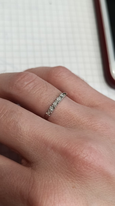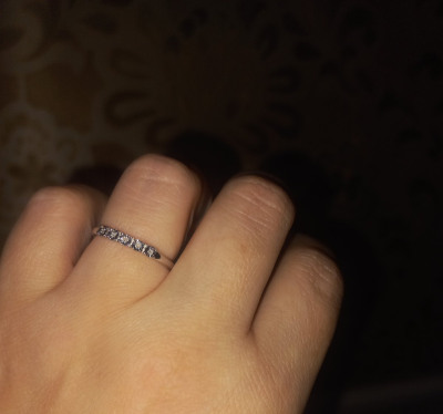 Очень -очень маленькие камушки,как будто и нет их там.Но из за огранки колечко все равно поблескивает при свете