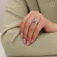 Кольцос синтетическим александритом увидела в каталоге случайно,заказала сразу,выкупила,но долго не носила,так как он носится в паре,а серьги из этой коллекции разобрали моментально.Большой камень,цвет меняет при разном освещении- от сиреневого,до малинового.Фианиты совсем не портят дизайн.Очень нарядное,для выхода.