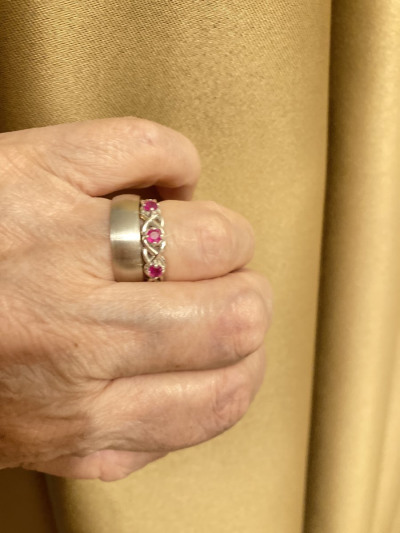 Универсальное колечко: как для мужчин так и женщин. Выглядит благородно т к не гладкое и создается впечатление дорогого металла. Внутренняя поверхность гладкая и комфортна на пальце. Позолота внутри так же создает впечатление более дорогого и очень качественного кольца. Можно использовать как базовое , как помолвочное и обручальное или просто одно. Очень понравилось! Спасибо мастерам и магазину!