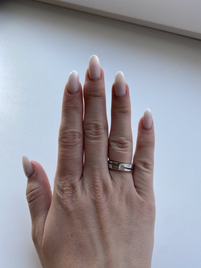 Кольцо очень красиво смотрится словно обручальное. От подарка в восторге. Фото конечно не успели сделать но эмоции и отзыз говорит,что всё супер.