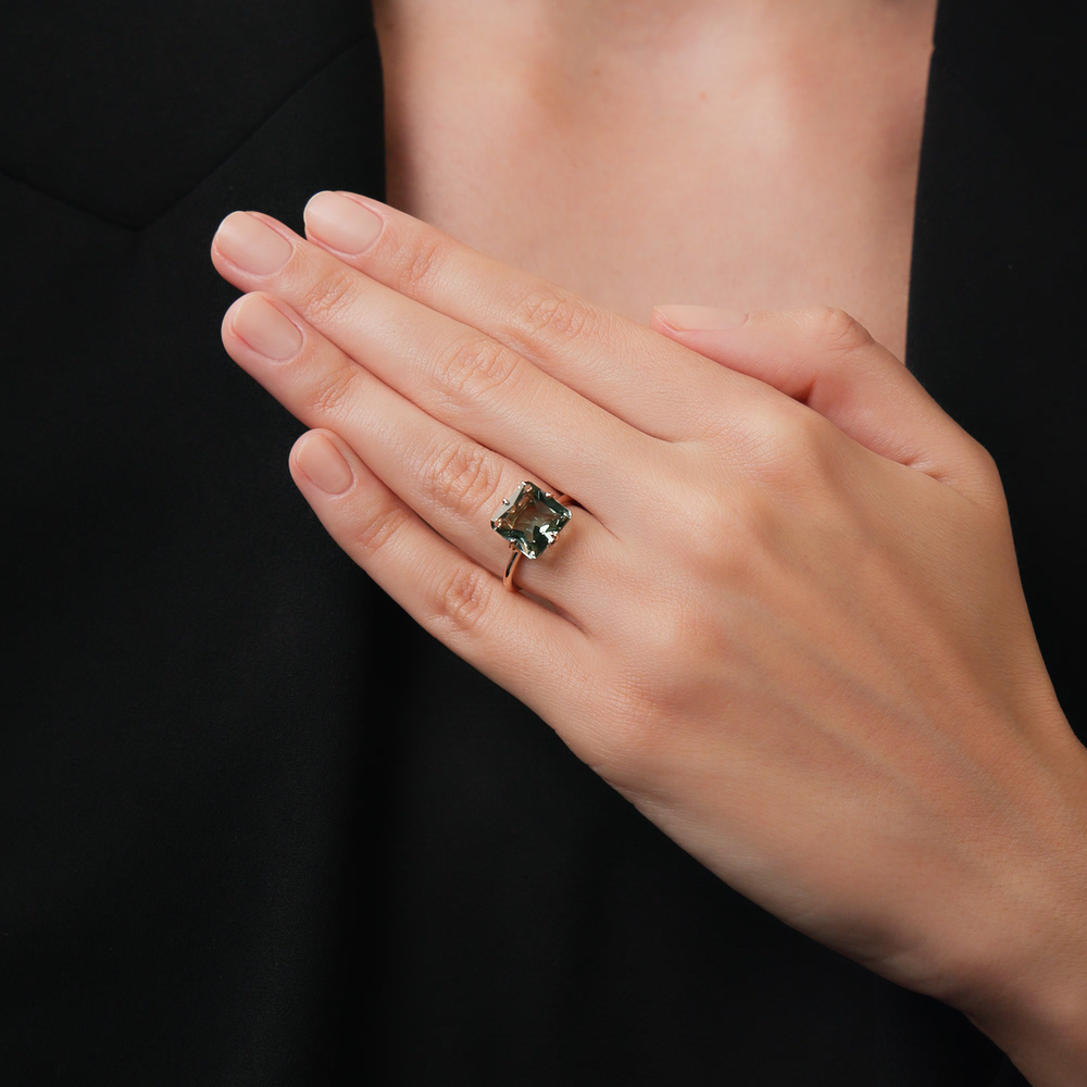 Кольцо с празиолитом — это прекрасный выбор для тех, кто ценит красоту и утонченность. Необычный камень, ограненный по типу «Багет», привлекает внимание цветом. Розовое золото 585 пробы добавляет изделию нежности и романтичности.
