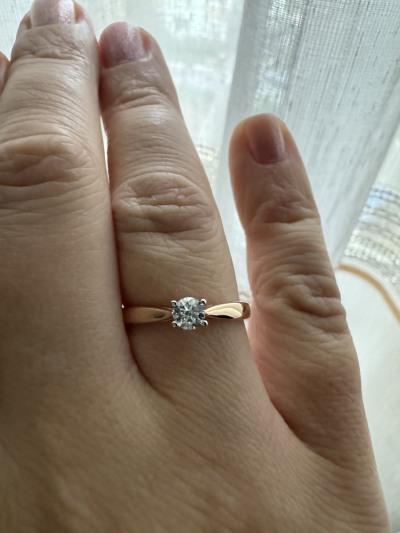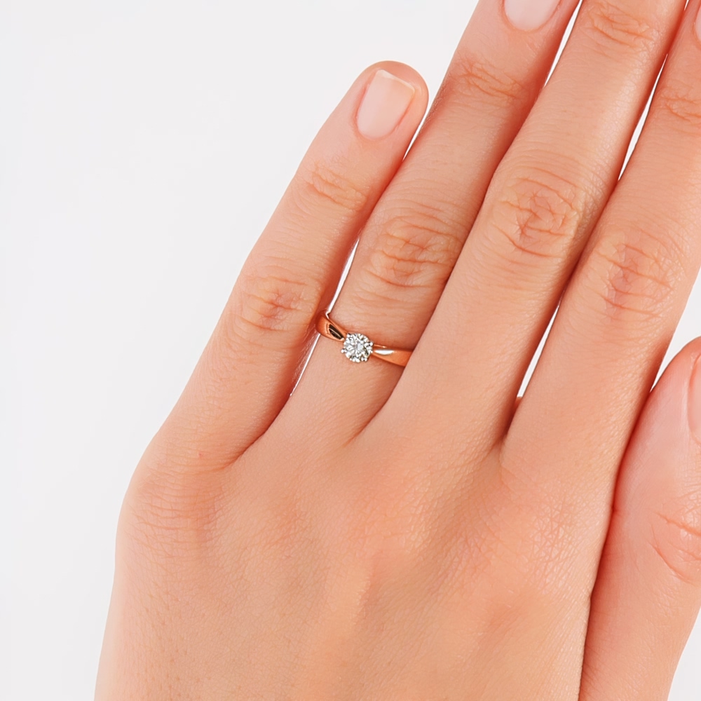 Кольцо с 1 бриллиантом природным, 0.24 карат, огранка круг 57 граней, цвет 5, чистота 7, тип огранки А;
