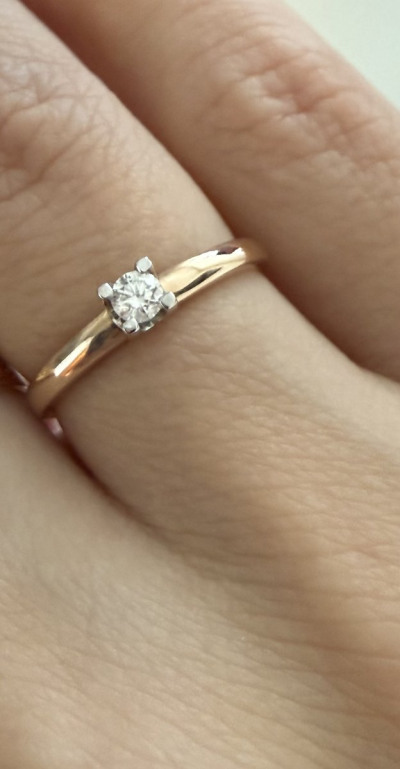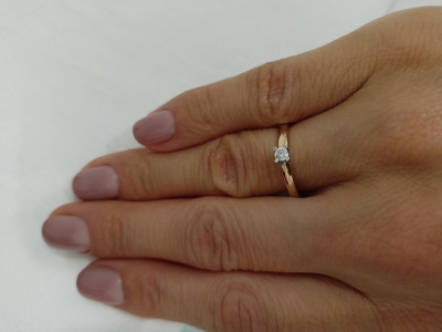 Кольцо с 1 бриллиантом природным, 0.09 карат, огранка круг 57 граней, цвет 3, чистота 6, тип огранки А;