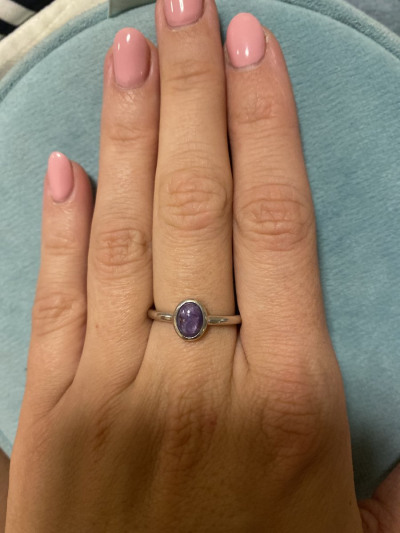Очень красивый цвет камня. Колечко смотрится сдержанно и мило.