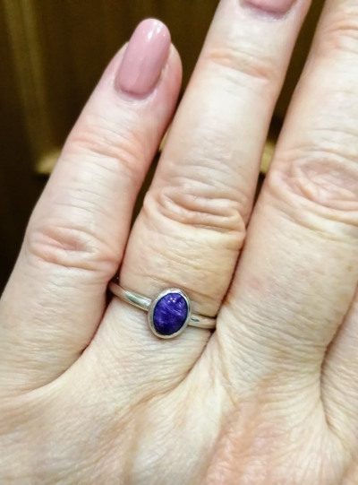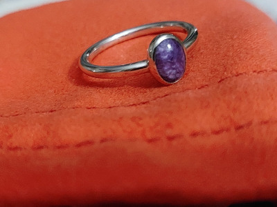 Милое колечко, нежное, с чароитом! Редкий камень!