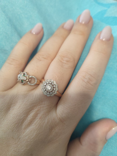 Кольцо выглядит торжественно и богато, камешки на свету прямо искрятся. Рекомендую к покупке.