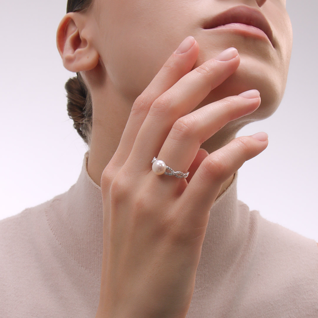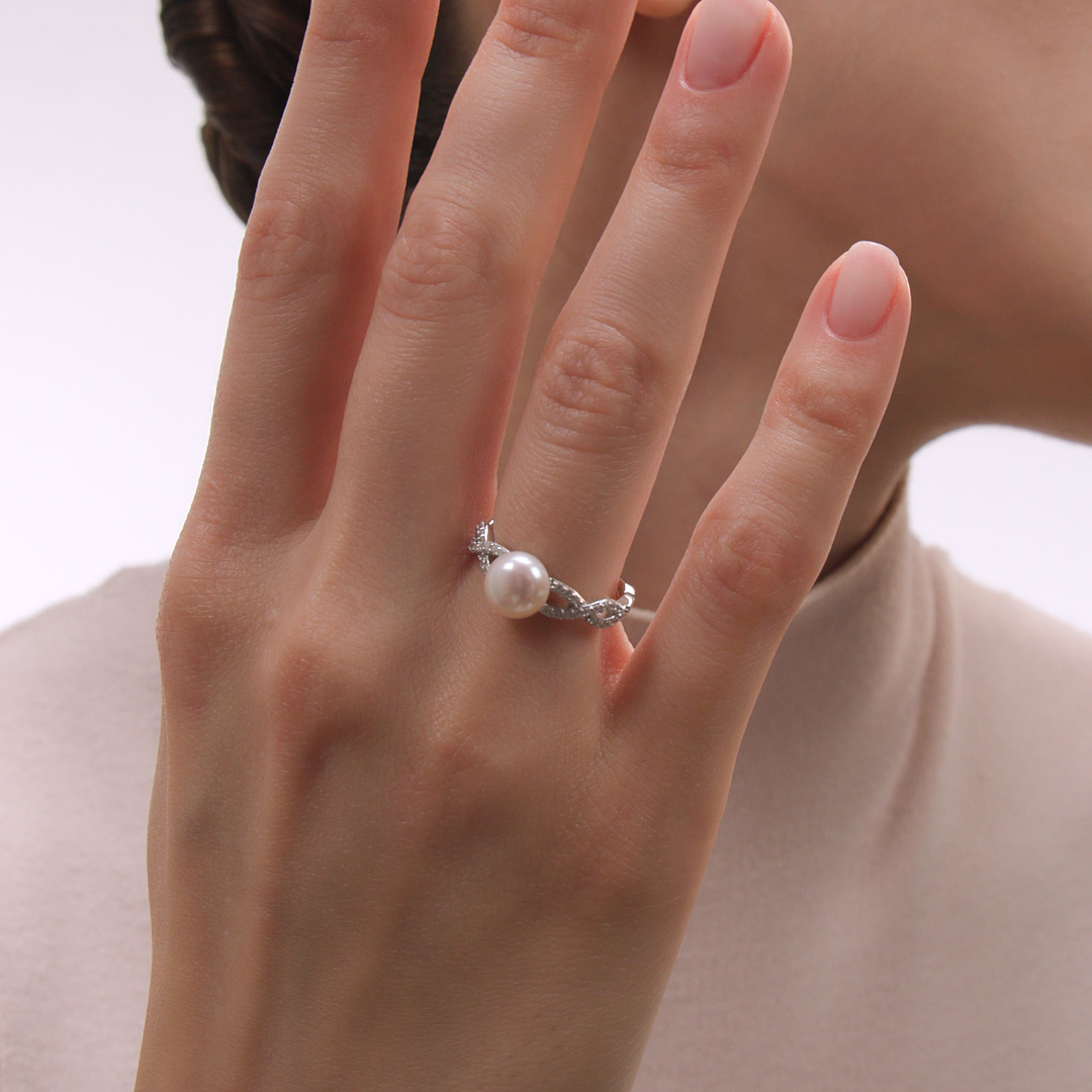 Серебряное кольцо с жемчугом и фианитами