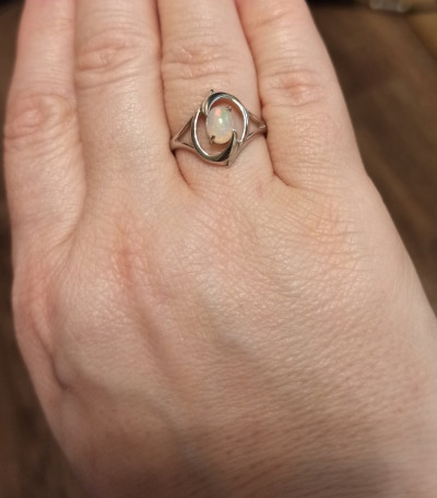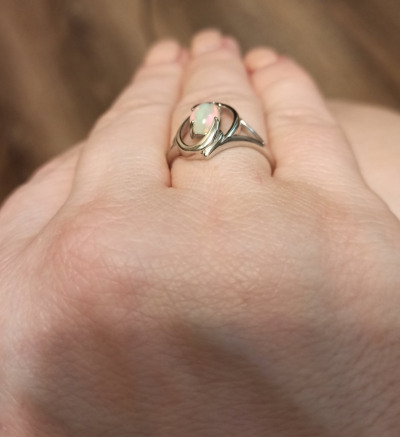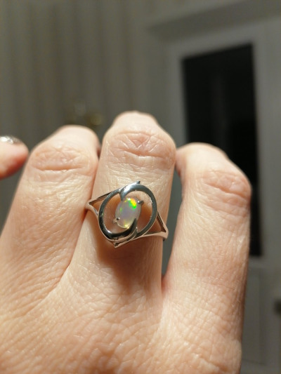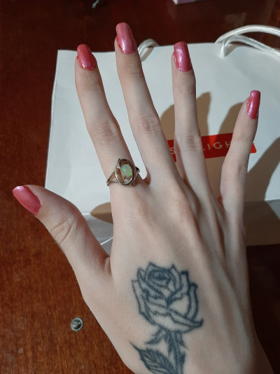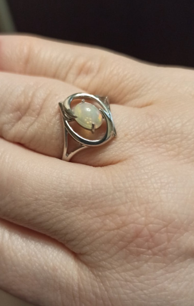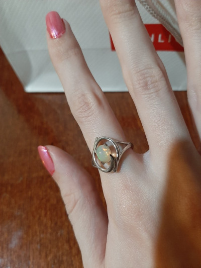 Давно хотела натуральный опал, пусть маленький но настоящий и безумно красивый, волшебное кольцо, оправа позволяет камешку не прилегать вплотную к пальцу, это позволяет камню быть подсвеченным и с низу!