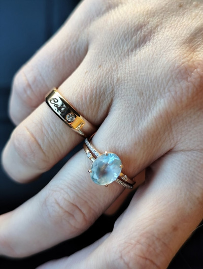 Ношу год, очень довольна и муж тоже, покупали 2 одинаковых кольца. Смотрится дорого