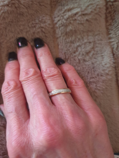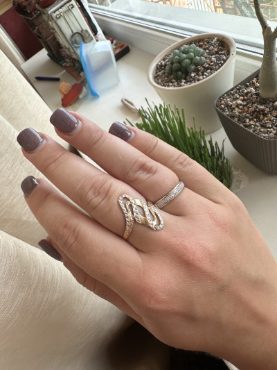 Кольцо идеальное! Когда смотрела в приложении, отметила его, но особого значения не предала, но увидев в жизни…случилась любовь. Плотное, камешки красиво переливаются на свету.