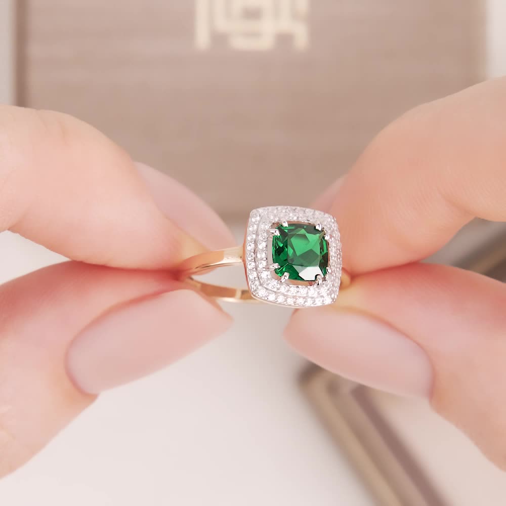 Золотое кольцо с фианитами и наноситаллами изумруд