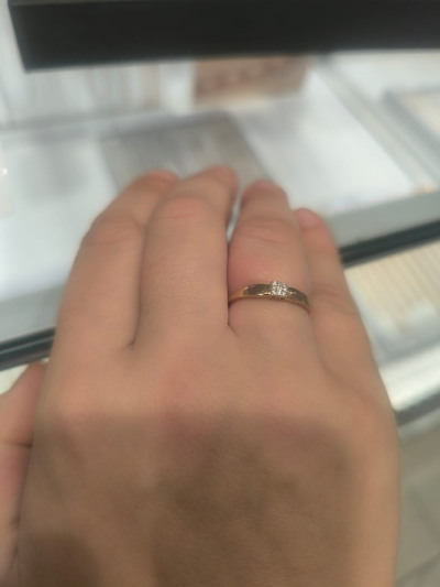 Кольцо с 1 бриллиантом природным, 0.01 карат, огранка круг 57 граней, цвет 4, чистота 6, тип огранки А;