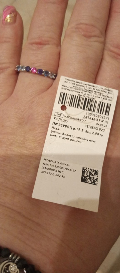 Мне очень понравилось колечко, качество супер, цвета камушек мои любимые)