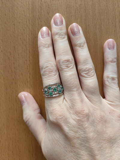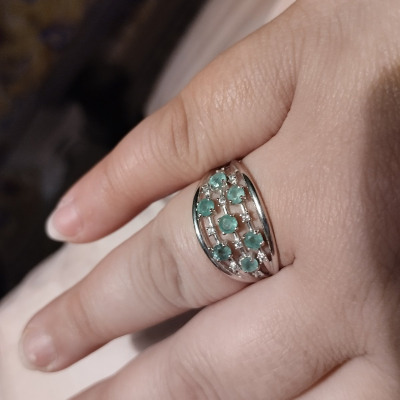 Очень красивое колечко. Приятно в носке, ни чего не мешает, не цепляется. Натуральные изумруды, хорошего качества.