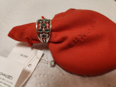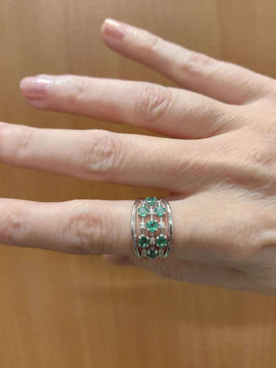Очень красивое кольцо с природными изумрудами и фианитами! Изумруды яркие, видные! Украшение очень красивое!
