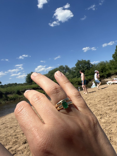 Это кольцо с натуральным изумрудом очень красивое, его хочется рассматривать, оно тёплое какое-то, к нему привязываешься, изумруд становится твоим