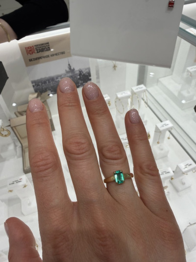 Очень красивое кольцо, заказываала три раза, чтобы выбрать идеальный для меня камень, остановилась в пользу более мутном, но потрясающе насыщенного цвета, другие камни были тоже красивыми, чистыми и сверкающими, но хотелось именно глубокого зеленого цвета.