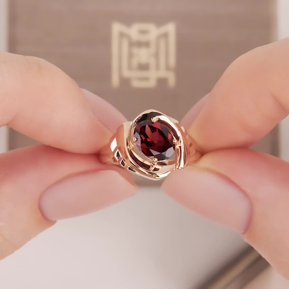 В редких случаях характеристики украшения или упаковка могут иметь отличия от представленных на фото или в описании.Кольцо с 1 гранатом природным, тип огранки Б;