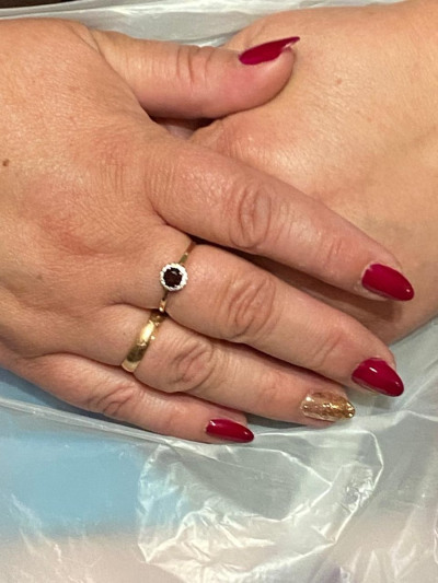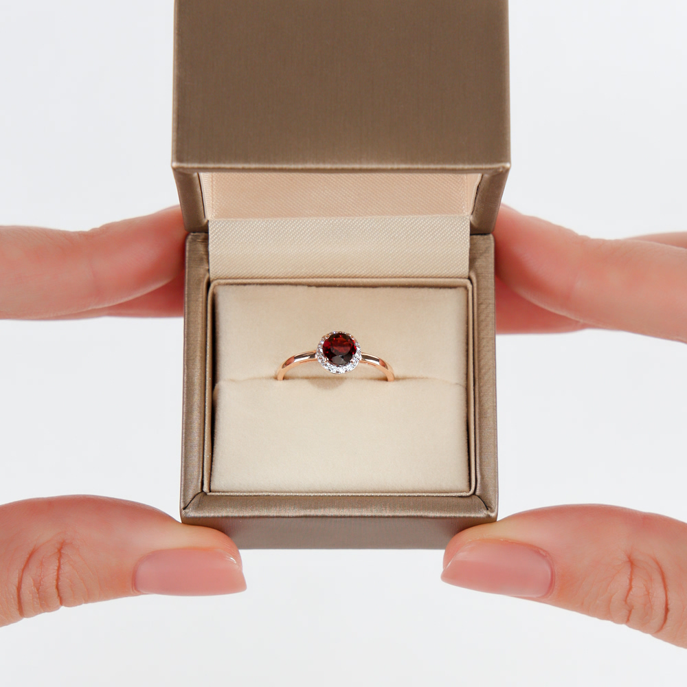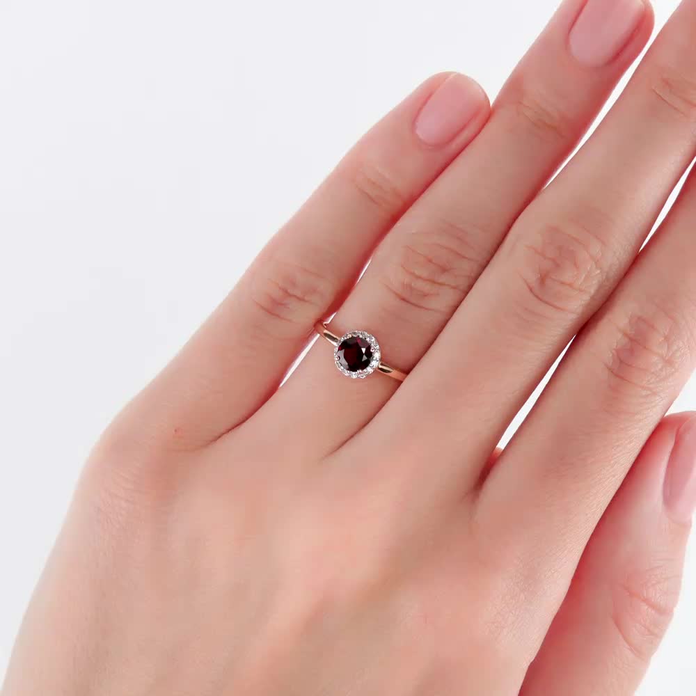 В редких случаях характеристики украшения или упаковка могут иметь отличия от представленных на фото или в описании.Кольцо с 1 гранатом природным, тип огранки В;
