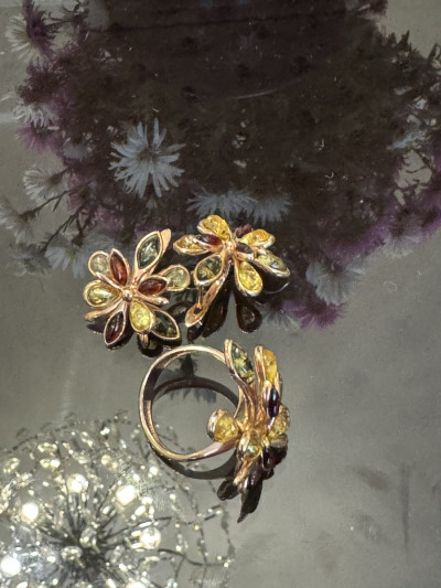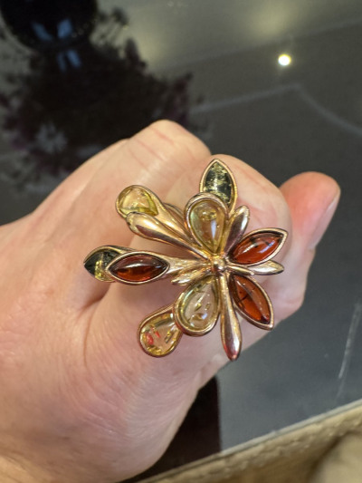 Шикарное кольцо с янтарем разного цвета🔥🔥🔥🔥💕💕💕💕