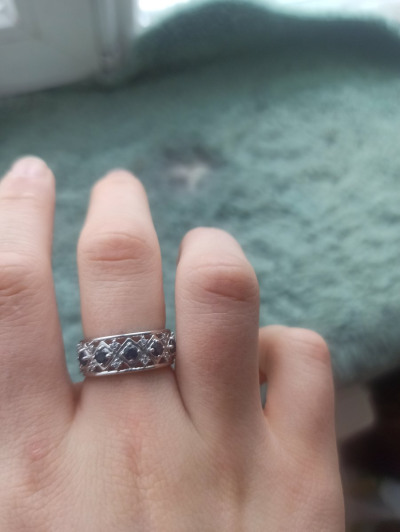 Кольцо очень качественно и плотно сделано, соответствует описанию! Пять сапфиров по 0.02 см, фианит подигрывает! Если покупать, то на 0,5 размера больше вашего! Ромбовидный узор ровный, все на своем месте. Самостоятельное украшение, не требует дополнения! Если цель проявить энергию камня, то вас не разочарует образ и символизм! Покупка радует!