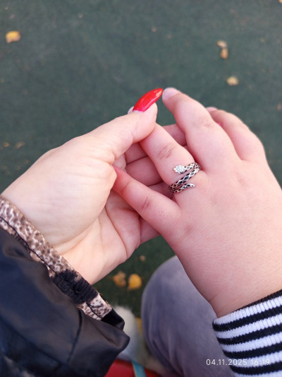 Классное кольцо змейкой. Купила дочери, ей нравится. Глазки с фианитами и на голове тоже, блестят.