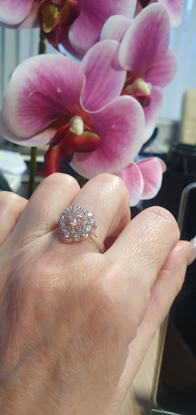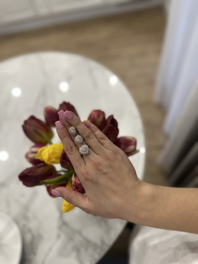 Кольцо выглядит в реальности намного эффектные, фото не передаёт всего блеска россыпи камней. Единственный момент, что размер можно взять чуть больше, у меня 17,5 и заходит туговато, чем другие кольца того же размера.