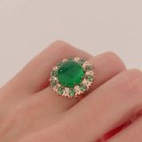 Золотое кольцо с бриллиантами природными, изумрудами природными и агатами природными