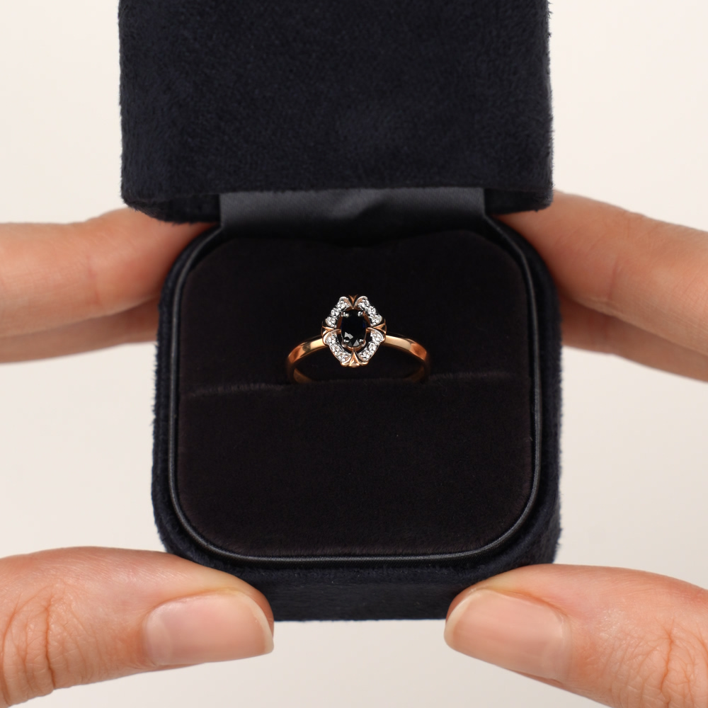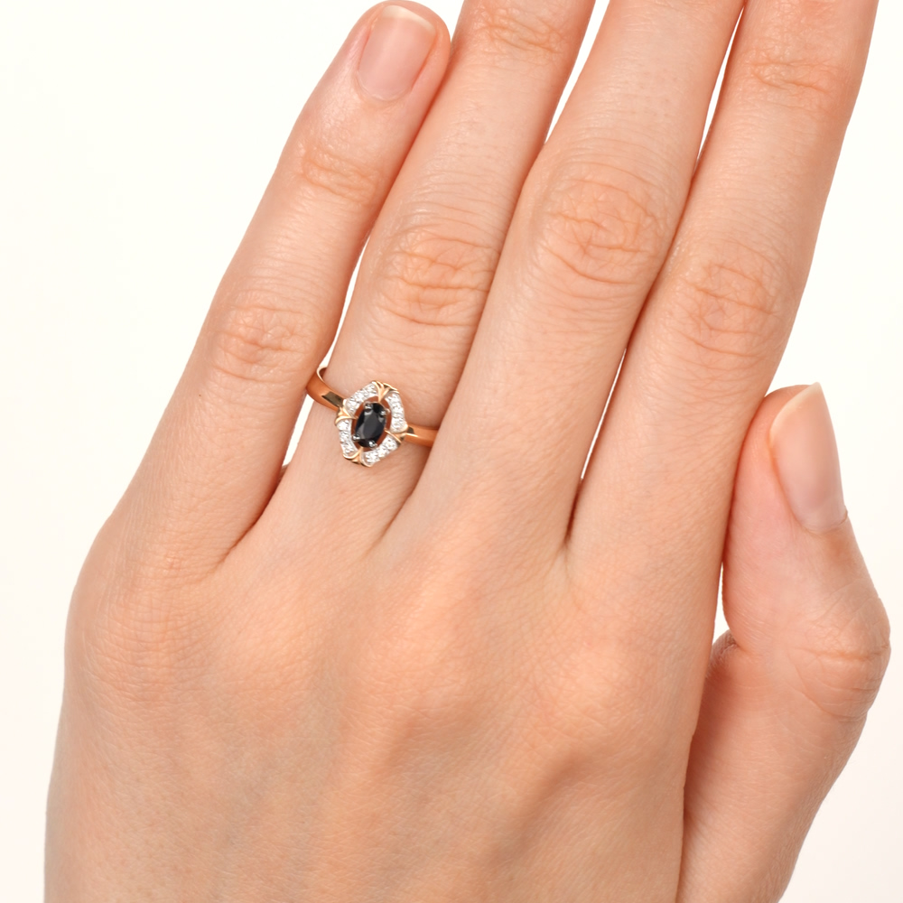 Золотое кольцо с бриллиантами природными и сапфирами природными