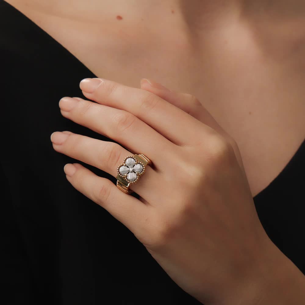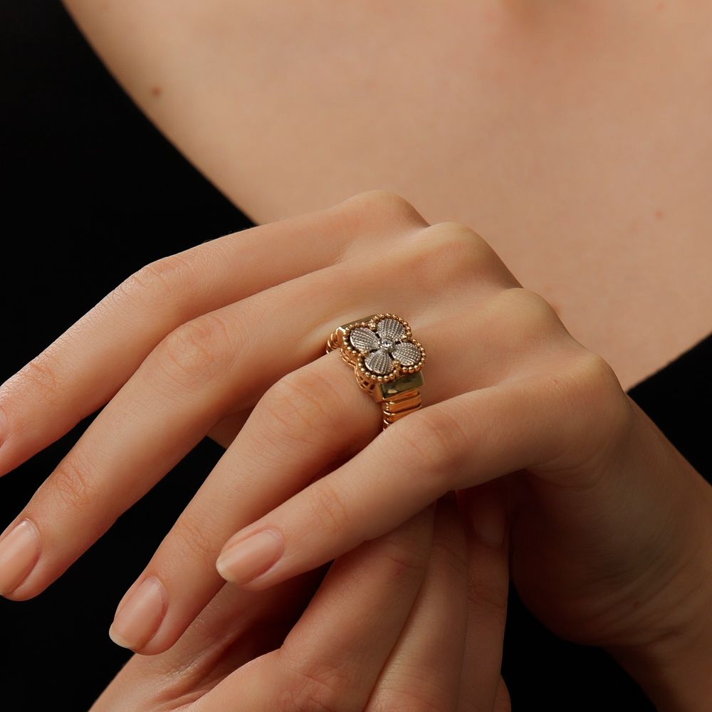 Необычное массивное кольцо с клевером, оно пружинит, идёт в размер, смотрится красиво