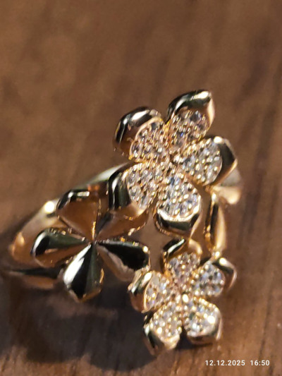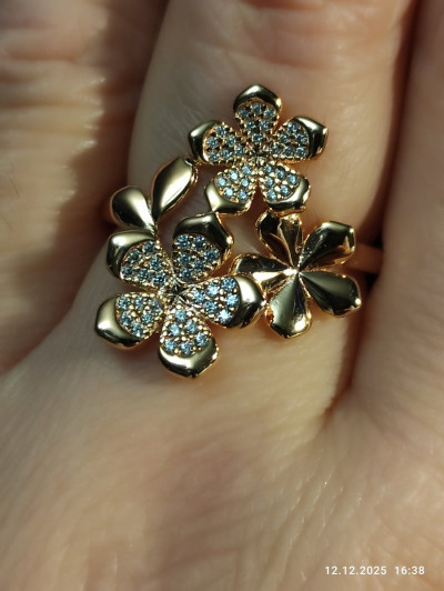 Ооочень красивое колечко с цветами из фианитов, блестят камушки, просто сказка какая то. Цветочная тема мне всегда нравилась и поэтому не смогла устоять перед этой красотой.