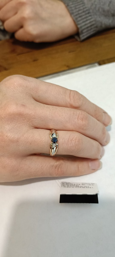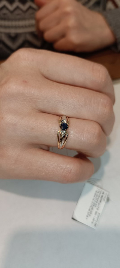 Золотое кольцо с бриллиантами природными и сапфирами природными