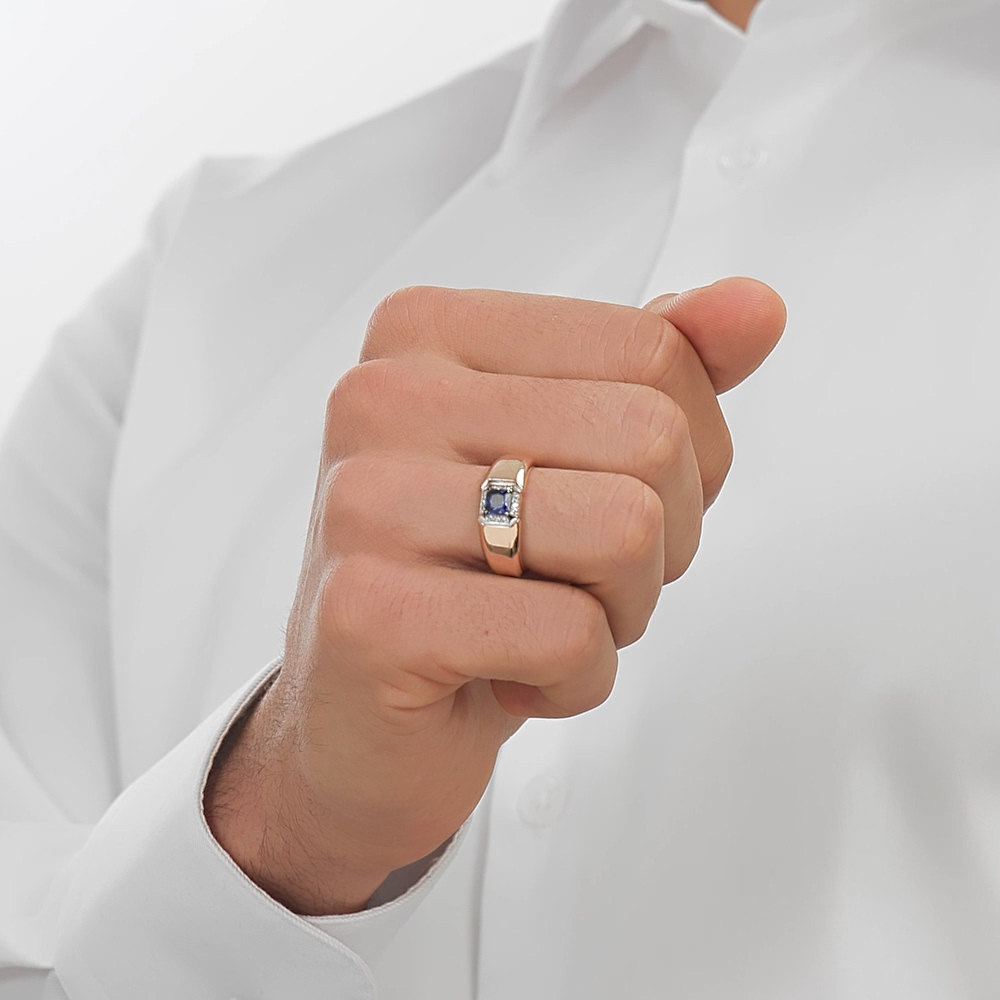 Золотое кольцо с бриллиантами природными и сапфирами выращенными
