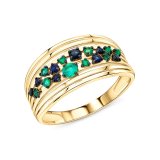 Золотое кольцо с изумрудами природными и сапфирами природными