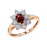 Золотое кольцо с бриллиантами природными и гранатами природными
