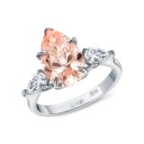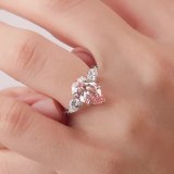 Кольцо с 1 бриллиантом выращенным, 3 карат, огранка груша 56 граней, цвет Розовый, чистота 5, тип огранки А;