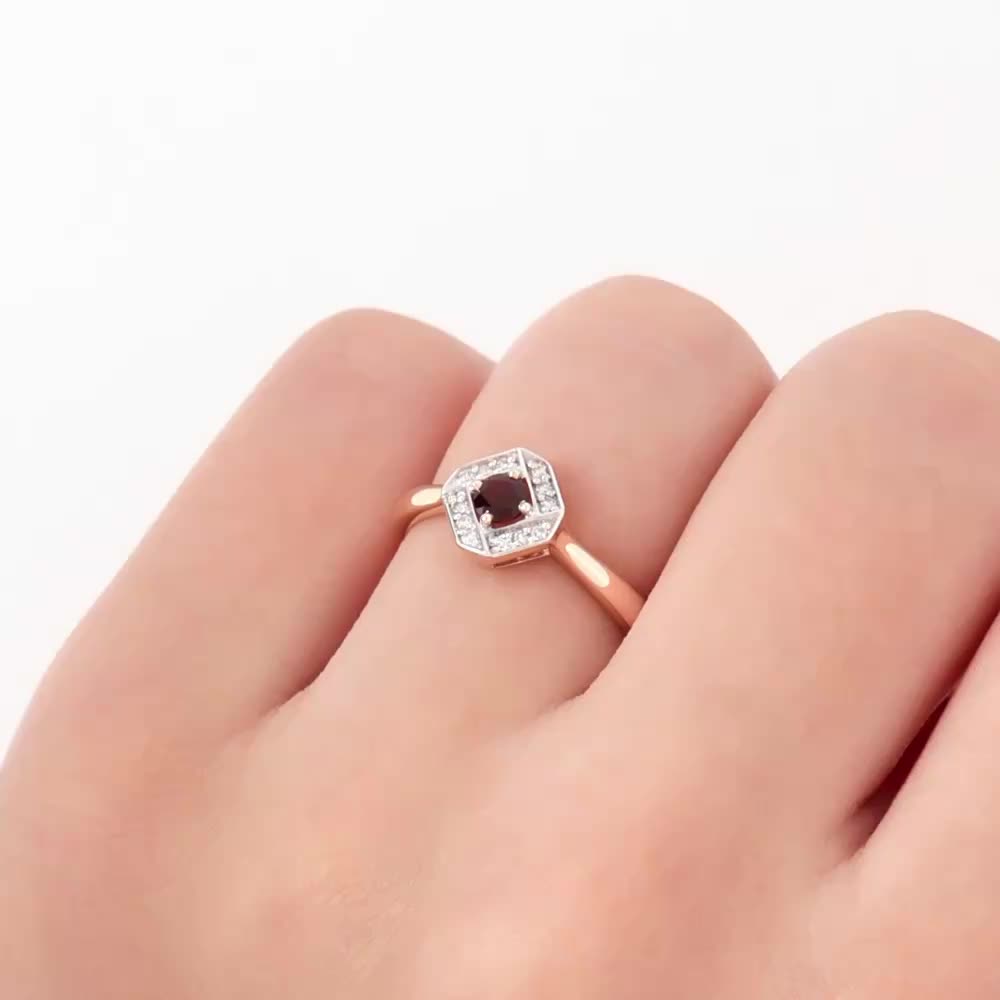 Золотое кольцо с бриллиантами природными и гранатами природными