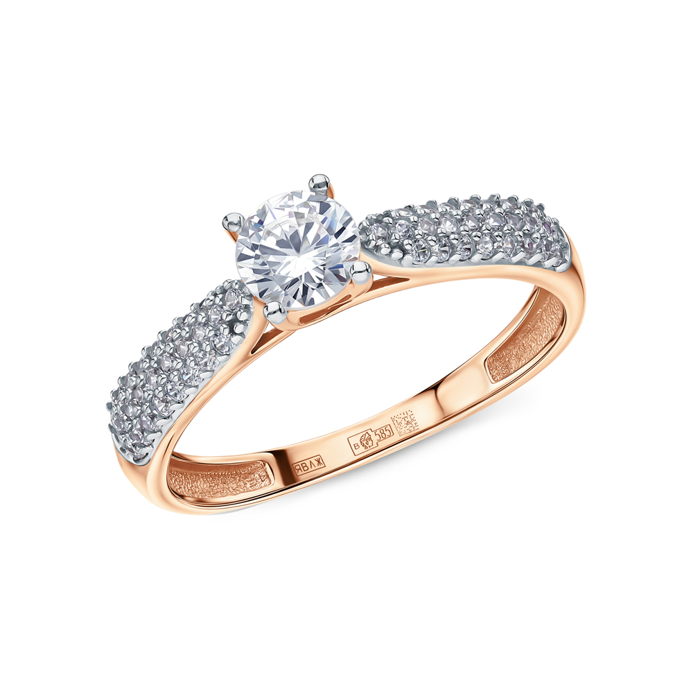 • Кольцо, вставка: фианитом бесцветным, тип огранки В;