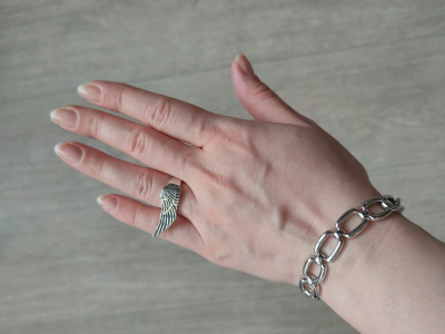 Колечко в форме крыла необычное, на два пальца ложится,есть подобная подвеска.