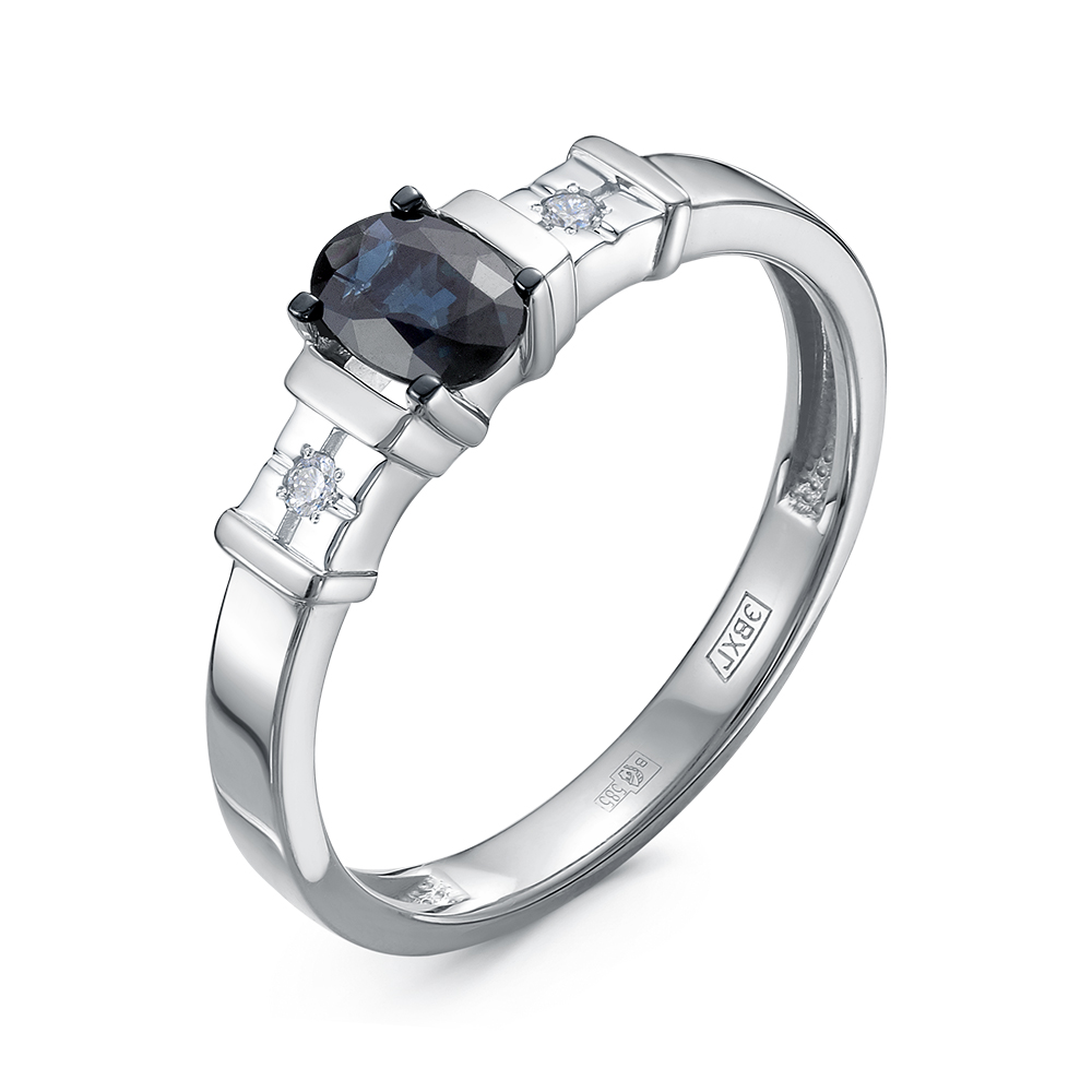 Золотое кольцо с бриллиантами природными и сапфирами природными