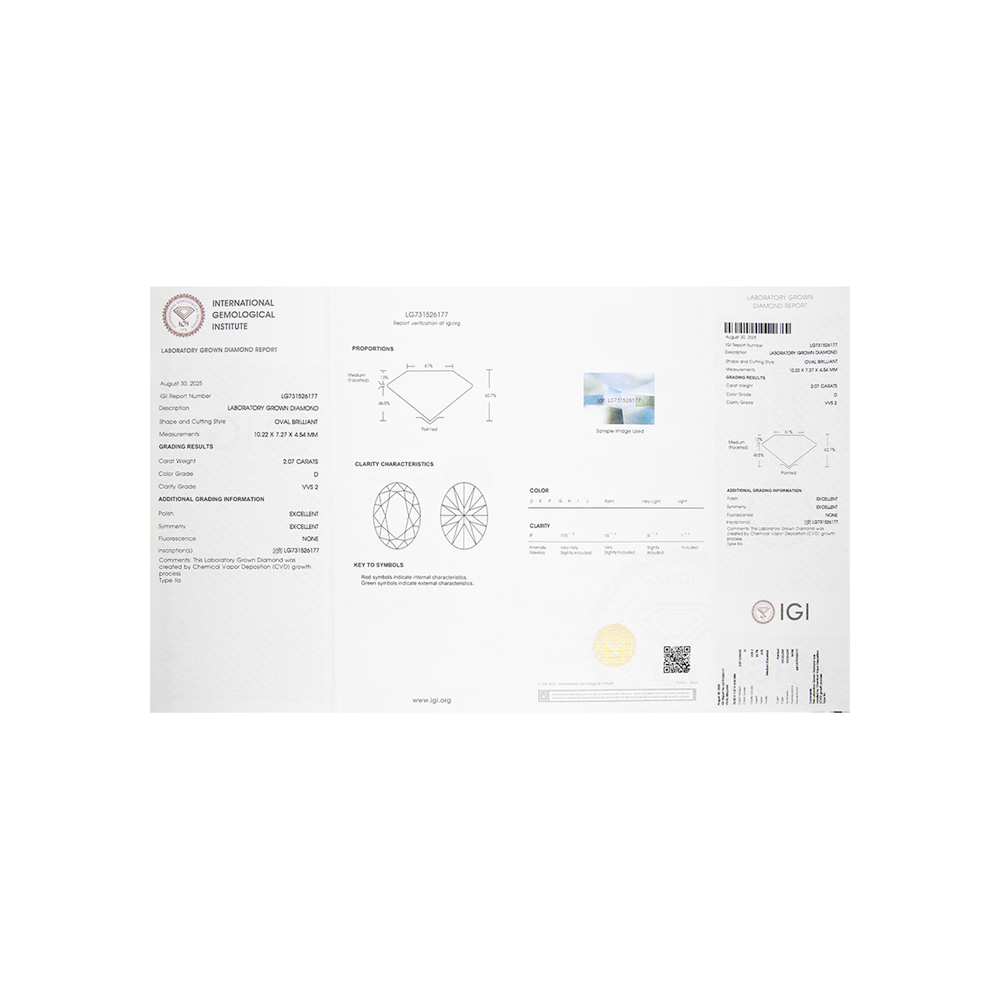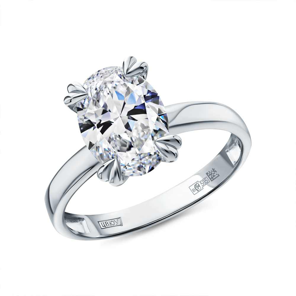 Кольцо с 1 бриллиантом выращенным, 2.03 карат, огранка овал 57 граней, цвет 3, чистота 5, тип огранки А;