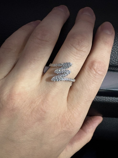 На мои маленькие широкие пальчики подошло именно это сверкающее необыкновенной красоты колечко.Его элегантная форма визуально удлиняет пальчик.