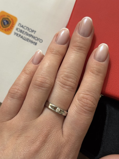 Кольцо с 1 бриллиантом природным, 0.08 карат, огранка круг 57 граней, цвет 4, чистота 6, тип огранки А;