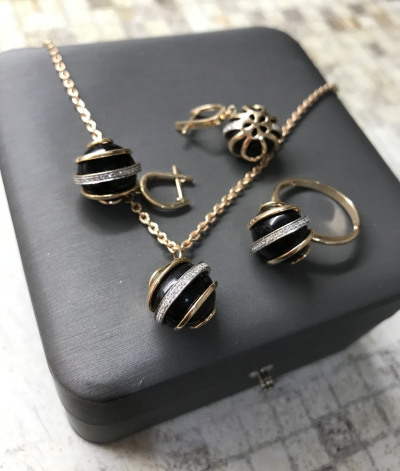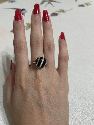 Очень понравилось колечко, большой чёрный оникс, в окружении бриллиантами.