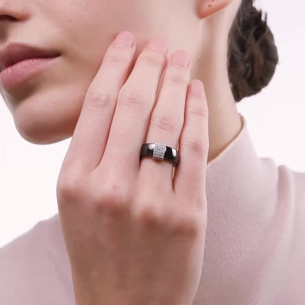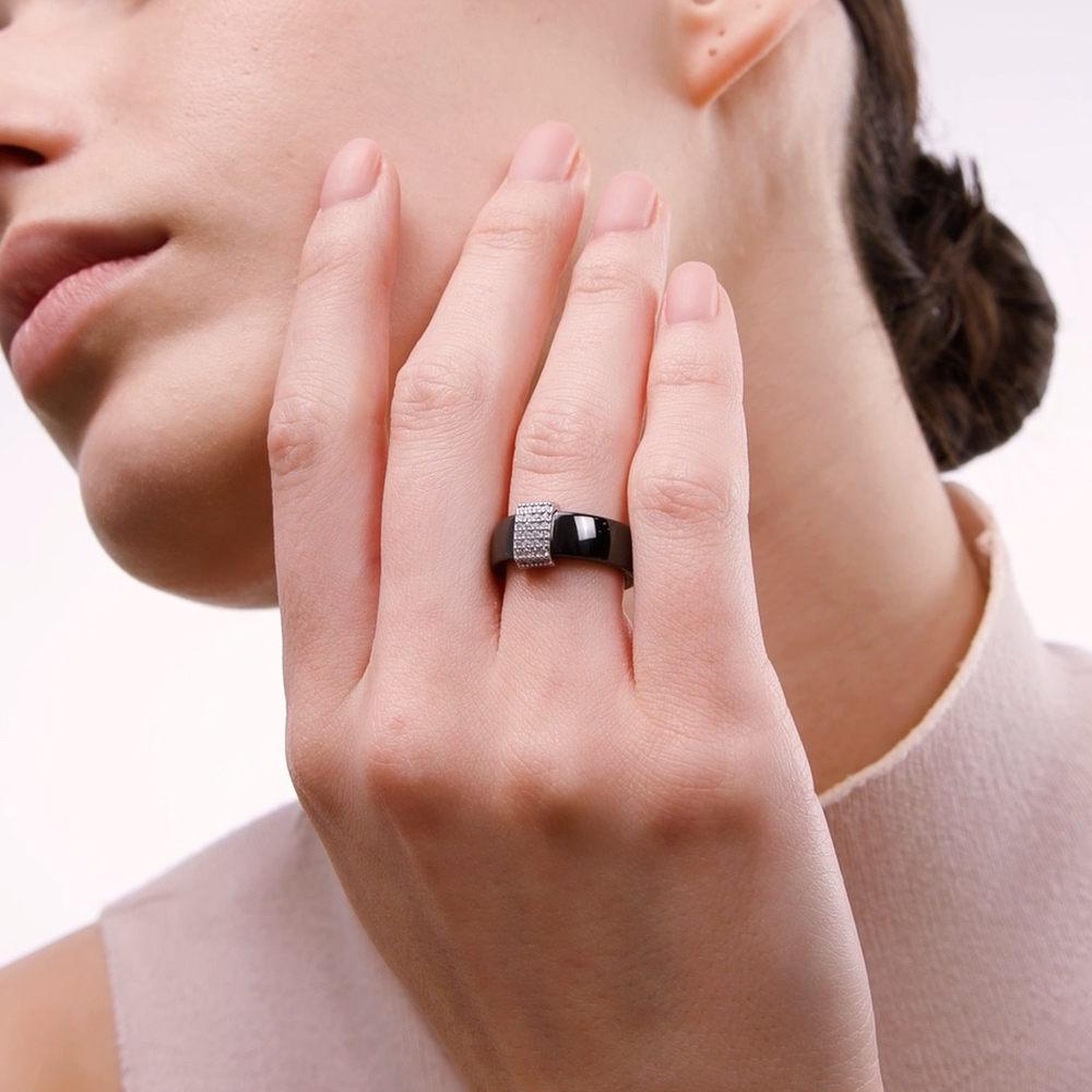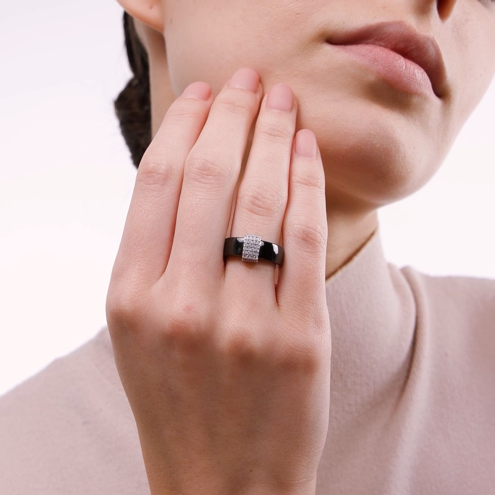 Керамическое кольцо с фианитами и керамикой