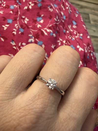Кольцо с 1 бриллиантом природным, 0.404 карат, огранка круг 57 граней, цвет 4, чистота 6, тип огранки А;