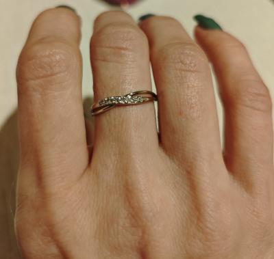 Хорошее колечко, со всеми бонусами купила по цене серебряного... Рядом кольца с бриллиантами в 4 раза дороже, разницы особо не вижу, но если бы выпустили точно такой же дизайн с бриллиантами, обязательно взяла бы
