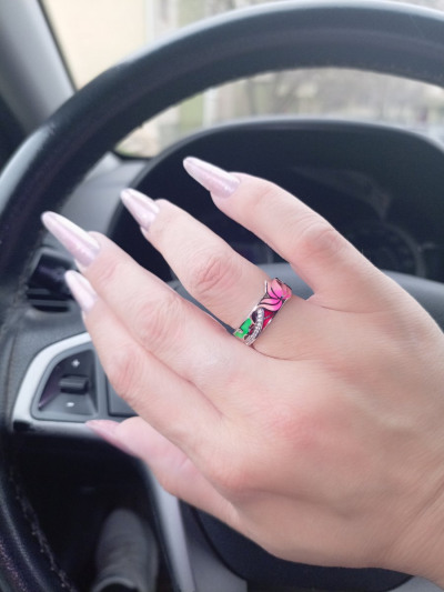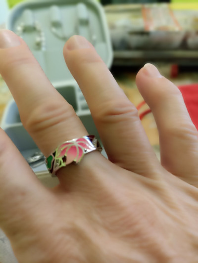 Классное колечко купила не раздумывая ,рисунок лотос цветок с цветочками ,вставками камушки, изготовлен с эмали супер!