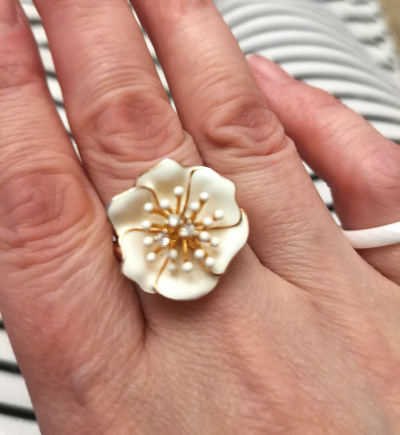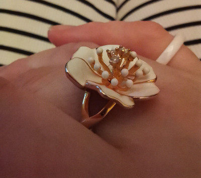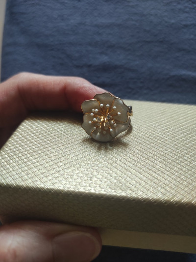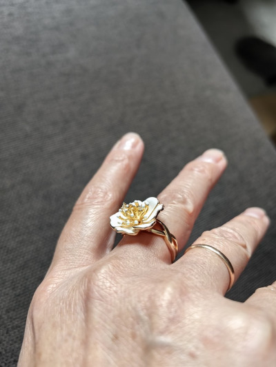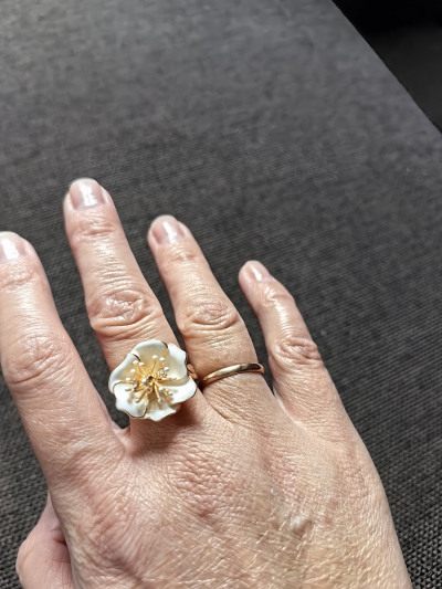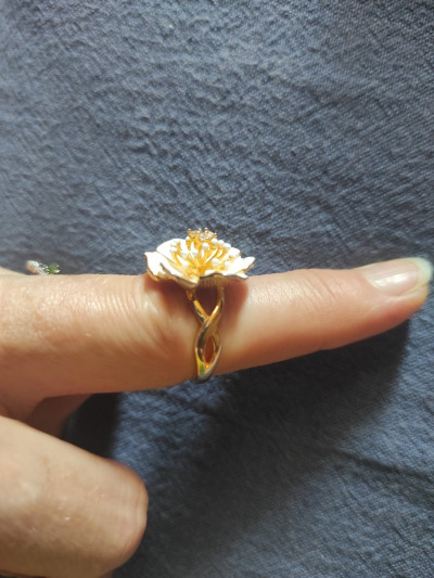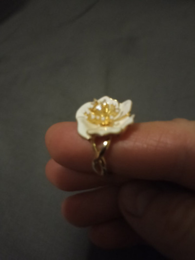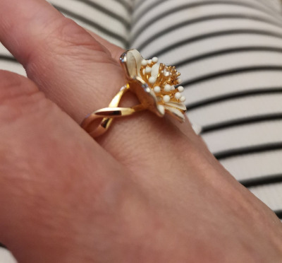 Купила это кольцо в прошлом году. Спасибо создателям за такую красоту, все продумано: каждый лепесток, каждая тычинка. Красивое, нежное колечко. Ношу с удовольствием