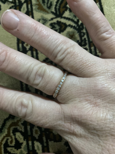 Кольцо понравилось, блестит, можно носить отдельно или в дополнение к другому кольцу. Камешки не цепляются.